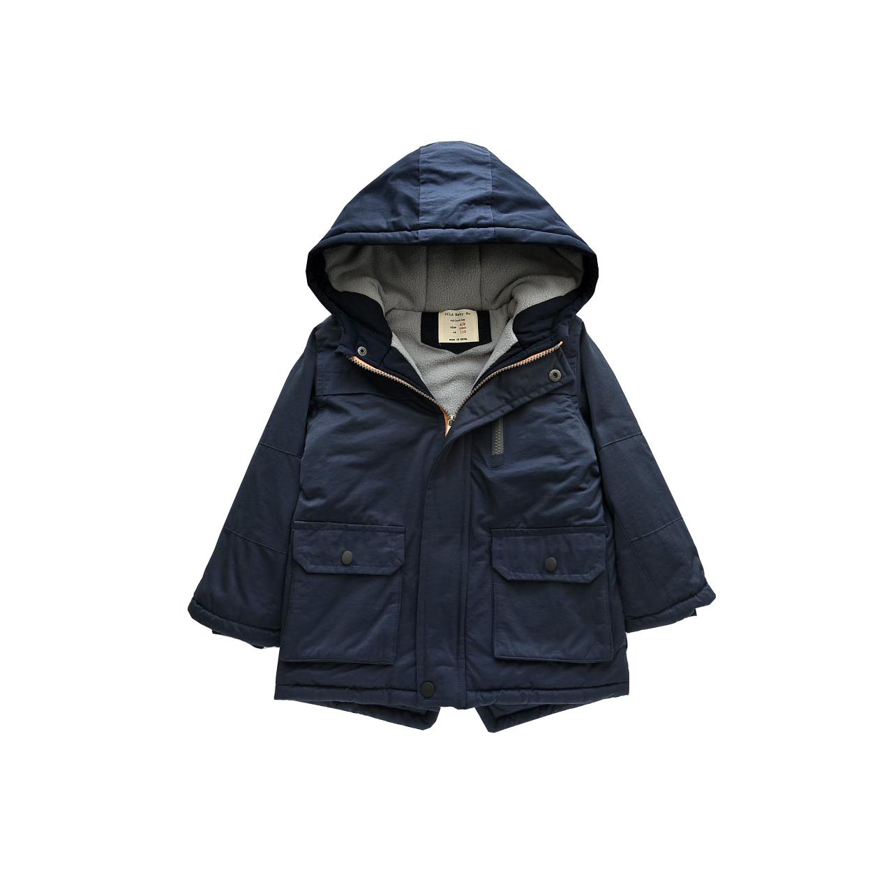 کاپشن بچه گانه طرح دوجیب برند معروف zcla رنگ سورمه ای تیره