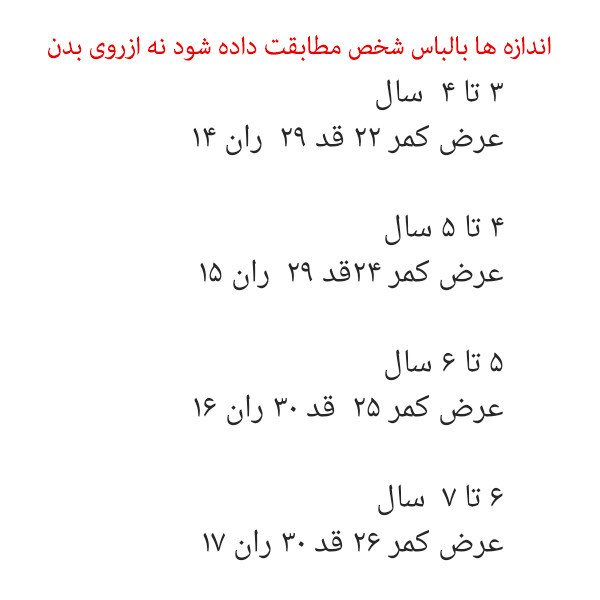 جزئیات: جنس شلوارک دورس خیلی نازک و 4 فصل است