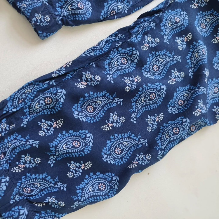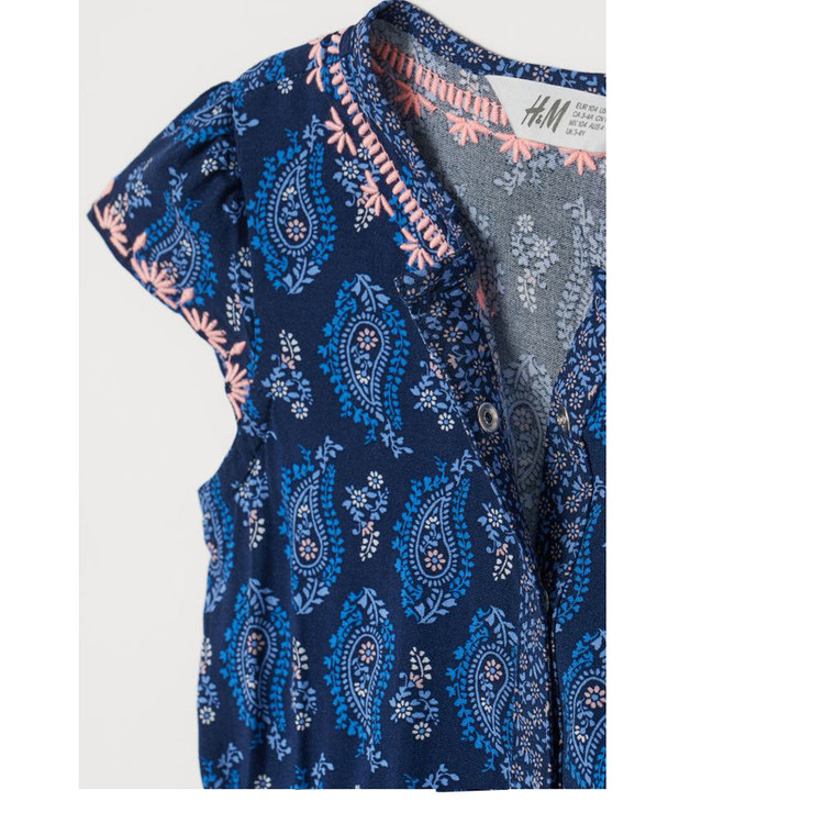 > این سرهمی تابستانی دخترانه از برند معروف H&M با طراحی خاص اسلیمی و رنگ سرمهای، یکی از انتخابهای شیک و راحت برای فصل گرم است. پارچه نخی خنک، طراحی بدون آستین و کمر کشدار باعث شده هم زیبا باشد و هم آزادی حرکت را برای کودک فراهم کند.