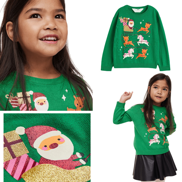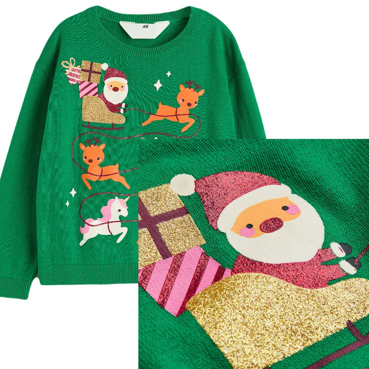 بافت ظریف دخترانه اچ اند ام مدل کریسمس رنگ سبز