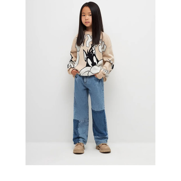 شلوار جین دخترانه sela مدل بگ تکه دوزی