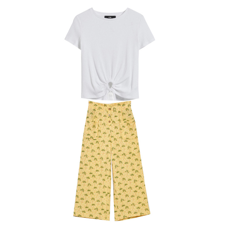 جنس تیشرت کشبافت با کشسانی زیاد است جنس شلوار کتان باف دار