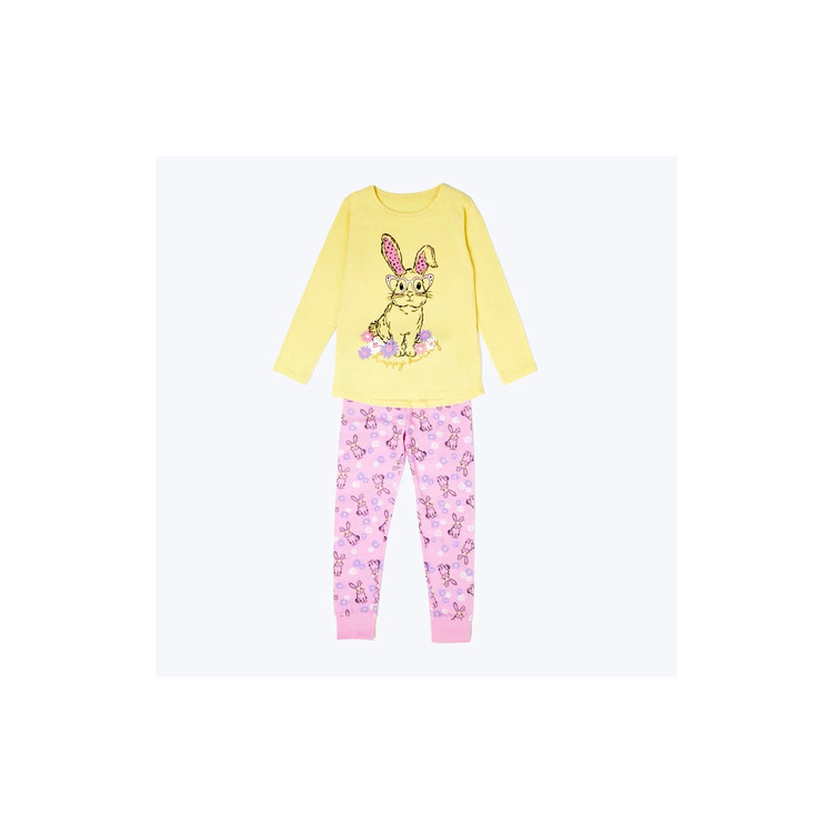 ست لباس راحتی دخترانه برند LIB رنگ زرد و صورتی(قواره کوچک)