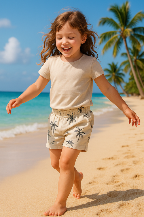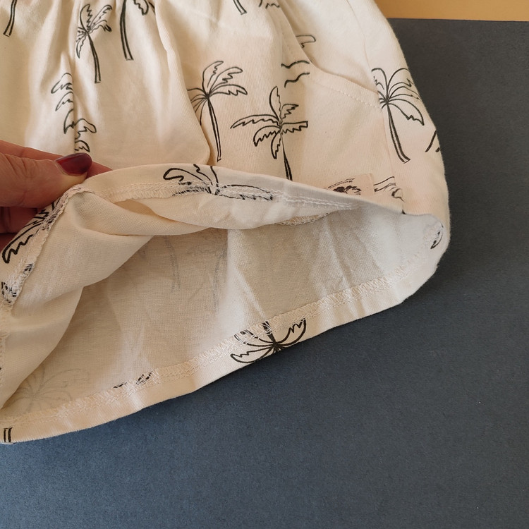 این شلوارک نخی دخترانه از برند زارا (کات لیبل)، با رنگ شیری و طرح نخل طراحی شده و مناسب تابستان است. پارچه نخ پنبهای آن بسیار خنک و لطیف بوده و آزادی حرکت خوبی برای کودک فراهم میکند.