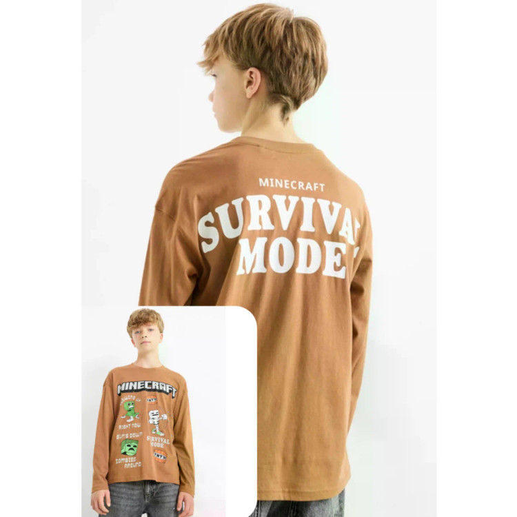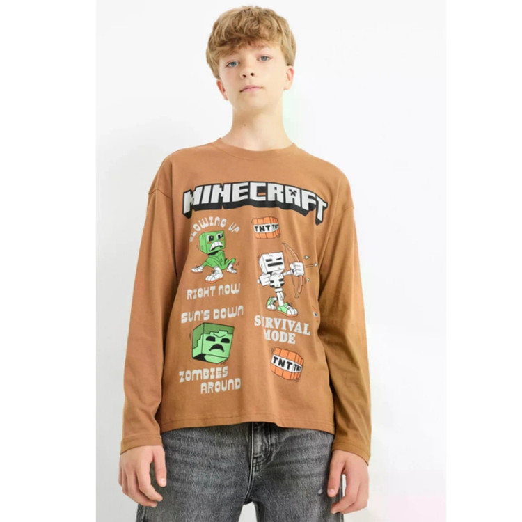 بلوز آستین بلند پسرانه طرح Minecraft انتخابی فوقالعاده برای پسرهای خوشسلیقه و علاقهمند به بازیهای ویدیویی است.